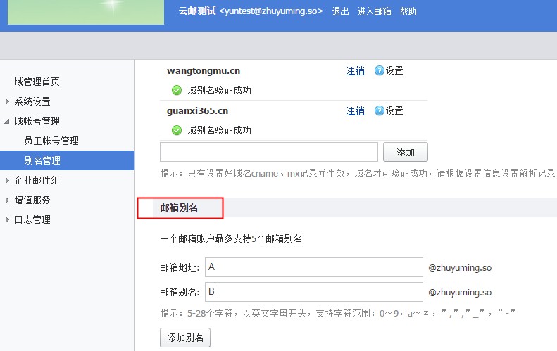 阿里企业邮箱优惠申请,阿里企业邮箱开通注册,阿里企业邮箱免费试用问题场景:企业邮箱账号具有唯一性,一旦创建后账号名称无法进行更改。需要使用其他名称作为邮箱账号名。注意事项:一个邮箱账户最多支持5个邮箱别名。解决方案:可以使用 邮箱别名 功能...